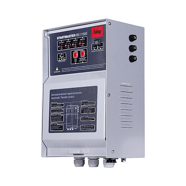 Блок автоматики FUBAG Startmaster BS 11500 (230V) может использоваться с автономными однофазными электростанциями с максимальной силой переменного тока до 50 А на выходе, которые оснащены соответствующим разъемом и поддерживают опцию автозапуска.