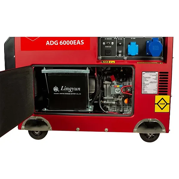 Дизель-генератор AMO ADG 6000EAS оборудован электростартером, его можно быстро и удобно запускать поворотом ключа. Такое решение особенно актуально на выезде и для решения задач, требующих частых перестановок. Электростартер питается от аккумулятора, который подзаряжается в процессе работы.