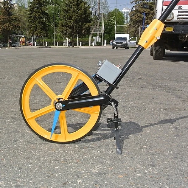 Конструктивно измерительный инструмент состоит из колеса с резиновой покрышкой и пластиковыми спицами, которое закреплено на рукоятке для удобного перемещения по дороге. Эргономичная форма рукоятки обеспечивает удобство его применения в течение длительного времени. Для торможения колеса во время его перемещения предусмотрена кнопка, расположенная возле ручки для удержания штанги.