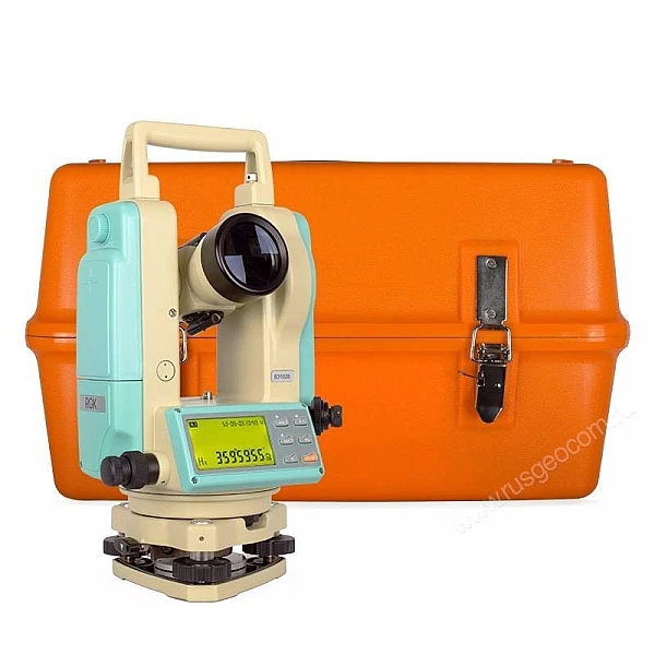 Электронный теодолит RGK T-05 представляет собой точный и надёжный оптико-электронный прибор, предназначенный для выполнения угловых измерений в горизонтальной и вертикальной плоскости. Прибор принадлежит к классу точных теодолитов: погрешность не превышает 5″, а кратность оптики составляет 30X.