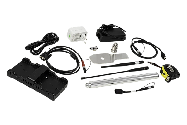 - Уклономер: встроенный компенсатор наклона автоматически корректирует координаты точек, получаемых под наклоном вехи до 30 °. Удобно снимать труднодоступные места, вроде углов зданий.