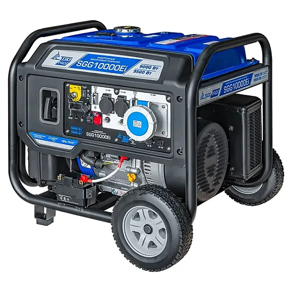 Профессиональный инверторный бензиновый генератор SGG 10000Ei с электростартом и разъемом для подключения блока автоматики. Укомплектован колесным комплектом для удобства перемещения. Мощная инверторная электростанция подходит не только для частного дома. Максимальная мощность 9,5 кВт электростанции достаточно для работы большого количества высокочувствительных электроприборов, а также оборудования высокой мощности. Электрозапуск обеспечивает быстрый и легкий пуск инвертора.