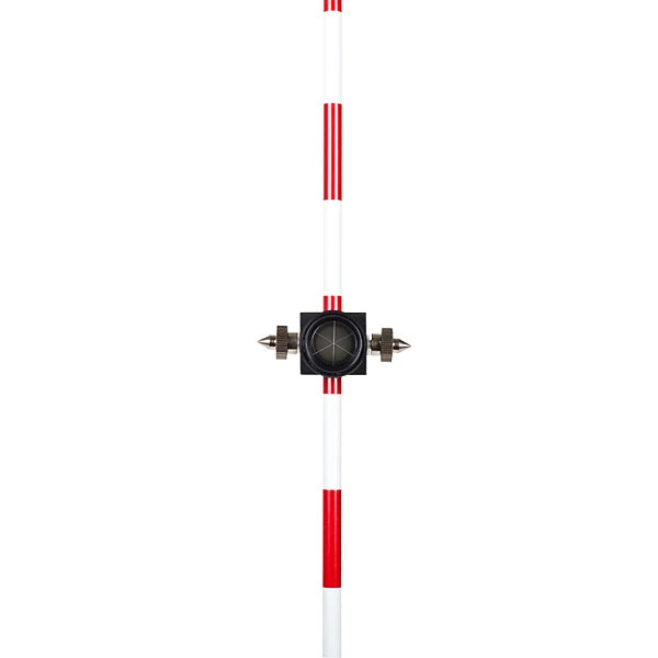 Этот геодезический отражатель поставляется в наборе с вехой, по которой его можно перемещать по всей длине для установки в необходимом положении. Надежный фиксатор обеспечивает неподвижность призмы. Точность выставления обеспечивается благодаря встроенному в держатель уровню.