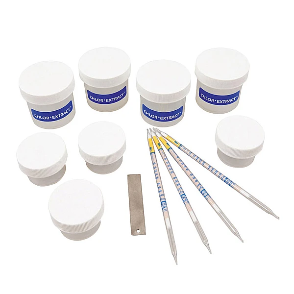 Elcometer 134A представляет собой удобный тестовый набор, позволяющий определять загрязненность абразивного вещества хлоридами и предотвращать дорогостоящий ремонт поврежденных покрытий. Тест на наличие ионов хлорида может выполняться быстро и точно с помощью новейшего метода, базирующегося на использовании раствора CHLOR*EXTRACT. Не требуется использование игл. Вещества, входящие в набор, не содержат ртути.