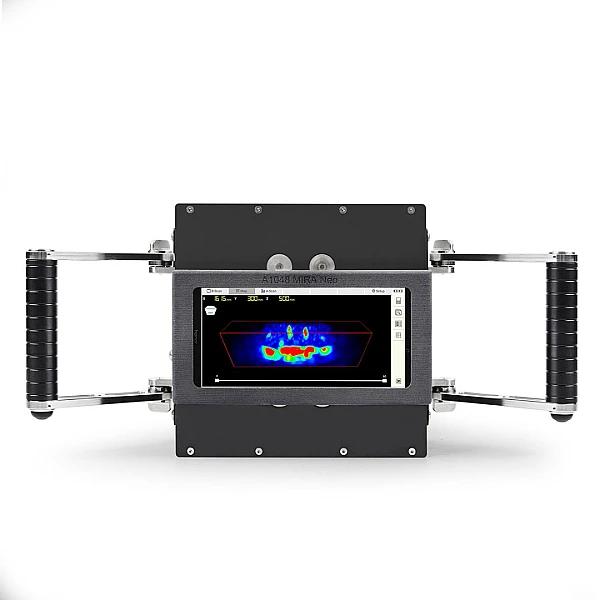 Инновационный, компактный низкочастотный ультразвуковой томограф А1040 MIRA 3D предназначен для контроля конструкций из бетона, железобетона и камня при одностороннем доступе к ним с целью определения целостности материала в конструкции, поиска инородных включений, полостей, непроливов, расслоений и трещин, а также измерения толщины объекта контроля. Основной особенностью томографа является ультразвуковой контроль объектов с толщиной до 1 метра возможностью быстрого построения 3D изображения внутренней структуры бетона.