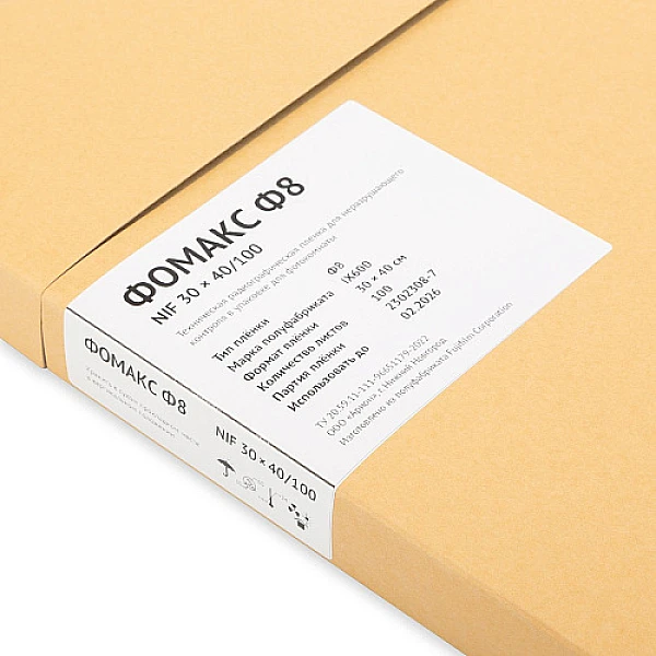 ФОМАКС Ф8 производится в формате листовой радиографической пленки (30 × 40 см), упаковывается по 100 листов в светонепроницаемый конверт. Существует два варианта упаковки: