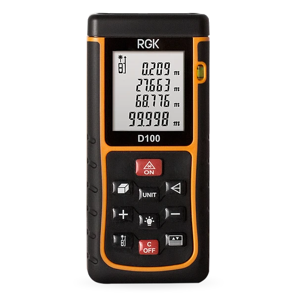 Лазерная рулетка rgk D100 оснащена максимальным набором функций, которые помогут вам существенно повысить свою эффективность. Всё, что вам необходимо сделать - это нажать на соответствующую кнопку или выполнить несколько последовательных измерений.