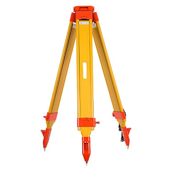 Телескопические ножки фиксируются в необходимом положении надежным винтовым механизмом. Заостренные наконечники стоек и прочные упоры помогают крепко установить геодезический штатив в рыхлый грунт.