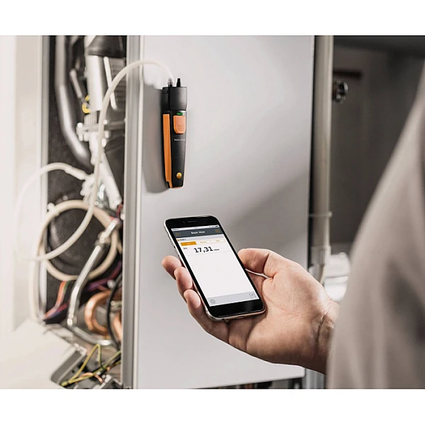 Дифференциальный манометр Testo 510i - это компактный прибор нового поколения для проведения диагностики газопроводов, систем вентиляции и фильтрации. В связке с смартфоном или планшетом, который используется для управления процессом исследования, устройство может эффективно и точно измерить такие параметры, как дифференциальное давление, объемный расход и скорость воздушного потока.